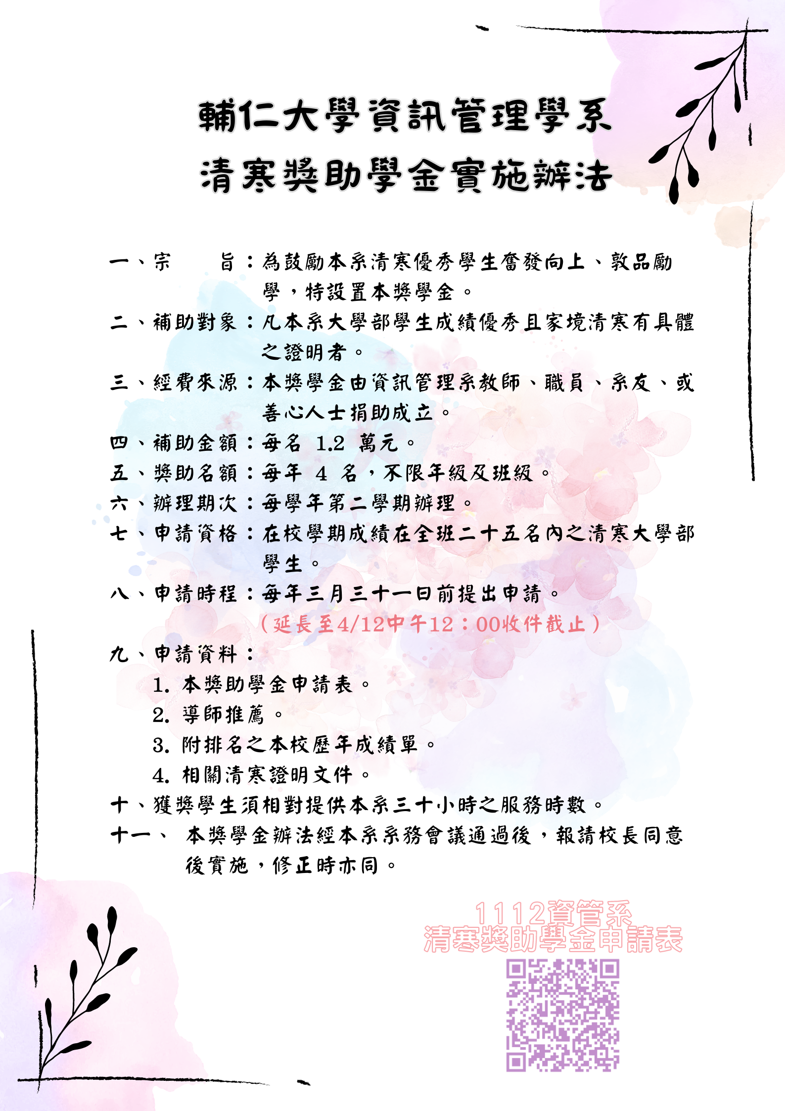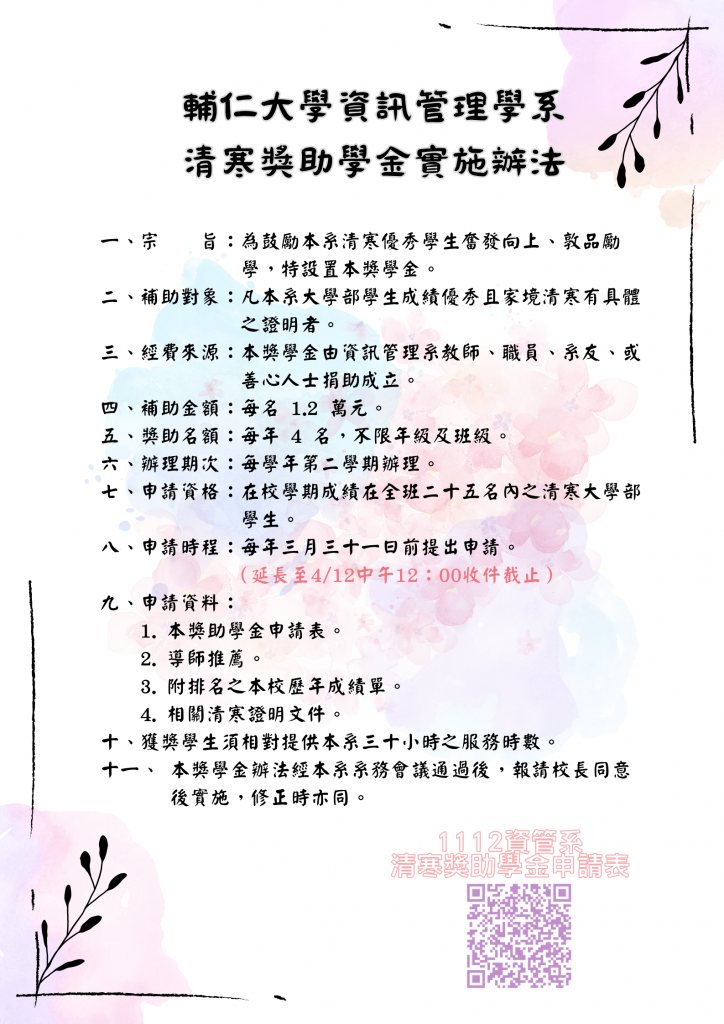 111學年度輔仁大學資訊管理學系-清寒獎助學金實施辦法-768x1086.png